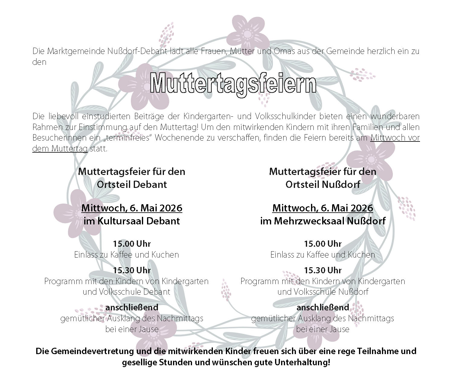 Wir freuen uns auf Ihre schriftliche Bewerbung, die Sie bitte mit den üblichen Unterlagen persönlich, per Post oder per E-Mail (marktgemeinde@nussdorf-debant.at)