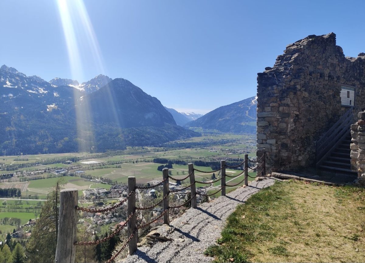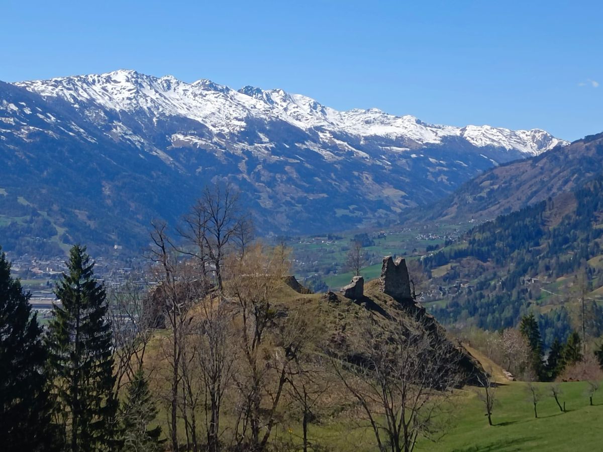 Wir fuhren nach Dölsach, parkten bei der Kirche und wanderten über das Pfarrwaldele, den Weg bzw. über die Straße, vorbei beim Moar-Tschapeller Bauer (Hinweistafel von Weg der Römer) hinauf nach Stronach. Dort mussten wir den Steig wieder hinunter zur Kapelle bzw. zur Ruine gehen. Wir haben bei der Ruine eine Weile gerastet, fotografiert und das schöne Wetter genossen. Dann ging es über den Steig hinunter bzw. zurück zu den Autos. Fein war`s!