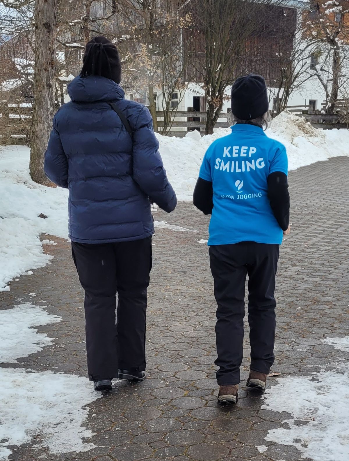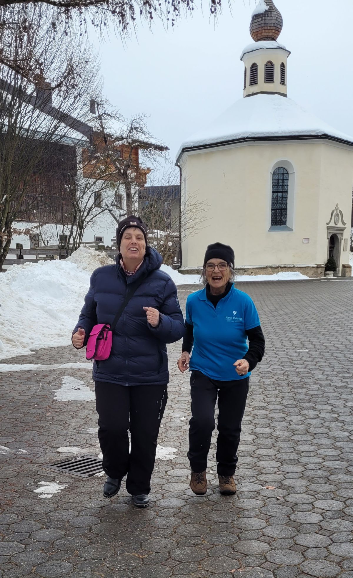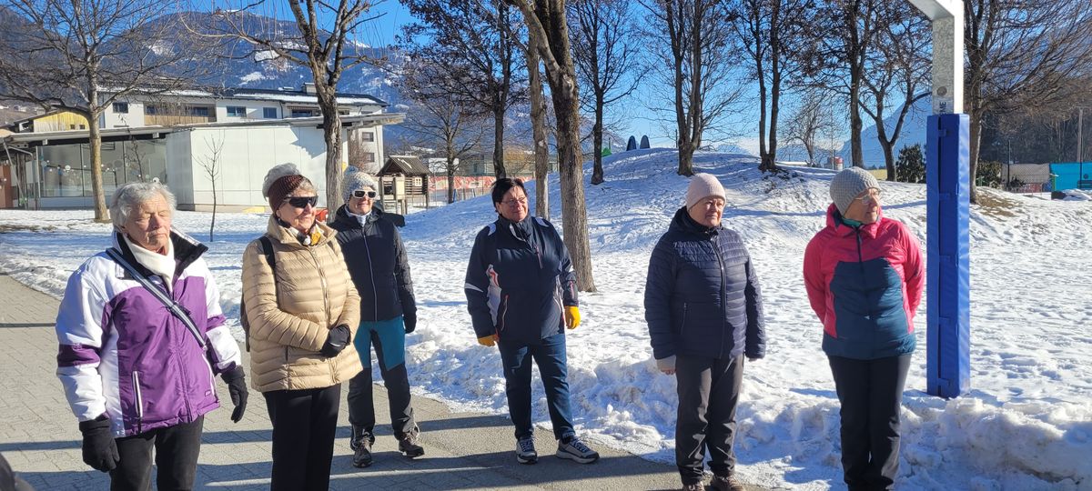 Erstmals wurde für die Naturfreunde so etwas Besonderes – so etwas Neues vorgestellt. Unter der Leitung von Edit wurde uns dieses Niko Niko Slow Jogging vorgestellt, erklärt und zum Mitmachen eingeladen. Wir bewegten uns grundsätzlich nur auf dem Vorfuß, in einem bestimmten Laufschritt unter Mitnahme der Hände, die angewinkelt im Vor- und Rückwärtstempo mitbewegt werden rund um die Gemeinde bzw. auf dem Platz zwischen der Halle und der Gemeinde. Uns wurde erklärt, dass man dieses Jogging in einem Tempo ausüben kann, dass man sich immer noch unterhalten kann, keine erhöhte Herzfrequenz verspüren soll, ein Lächeln im Gesicht zeigen soll, jederzeit und überall dies ausüben kann – sogar beim Kochen zuhause! Jederzeit kann man das Tempo selber steigern, in dem man größere Schritte macht! Wir joggten trotz der Kälte Mithilfe der Sonnenstrahlen ca. 1 Stunde mit Edit. Dann leicht durchgefroren, ging's auf ein warmes Getränk.